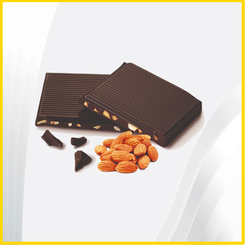 The bitter sweet taste of dark chocolate meets up with fine quality almonds