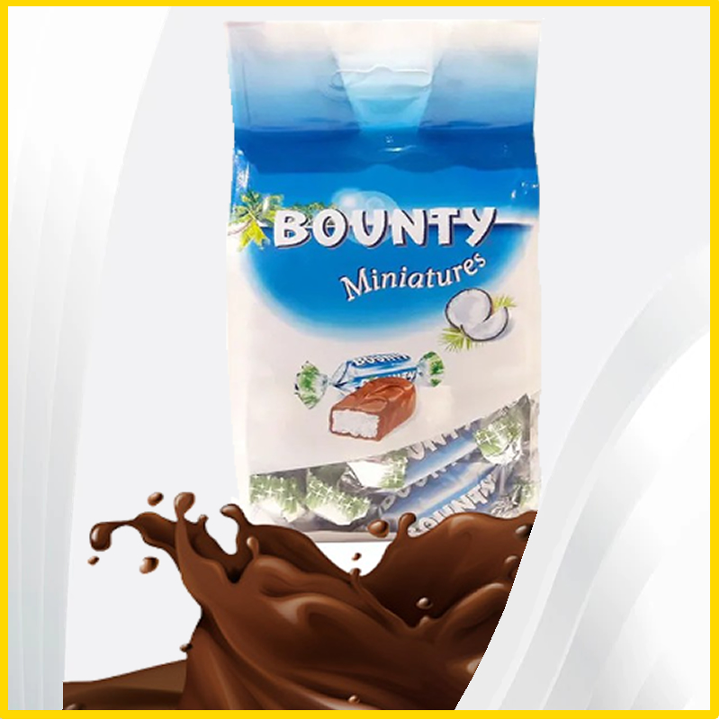 - Bounty ministures dessert combines milk chocolate filled with juicy, white coconut flesh in small, pocket size bars.