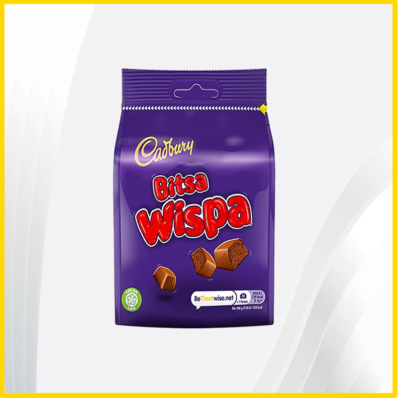 - Enjoy irresistible bite-size pieces of Wispa chocolate with Cadbury Wispa Bitsa. These scrumptious mini Wispa bars are a delectable treat with light airy bubbles that melt on the tongue. With a re-sealable bag, these cheeky chunks of chocolate are ideal for sharing with family and friends