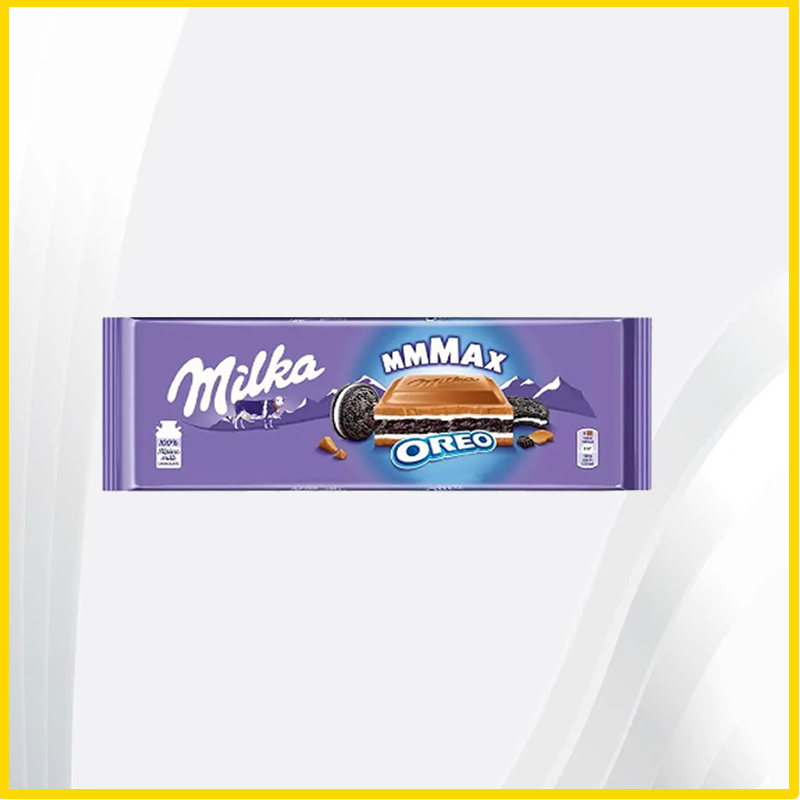 XXL chocolate bar of Alpine milk chocolate with leche with vanilla flavor and Oreo biscuit.